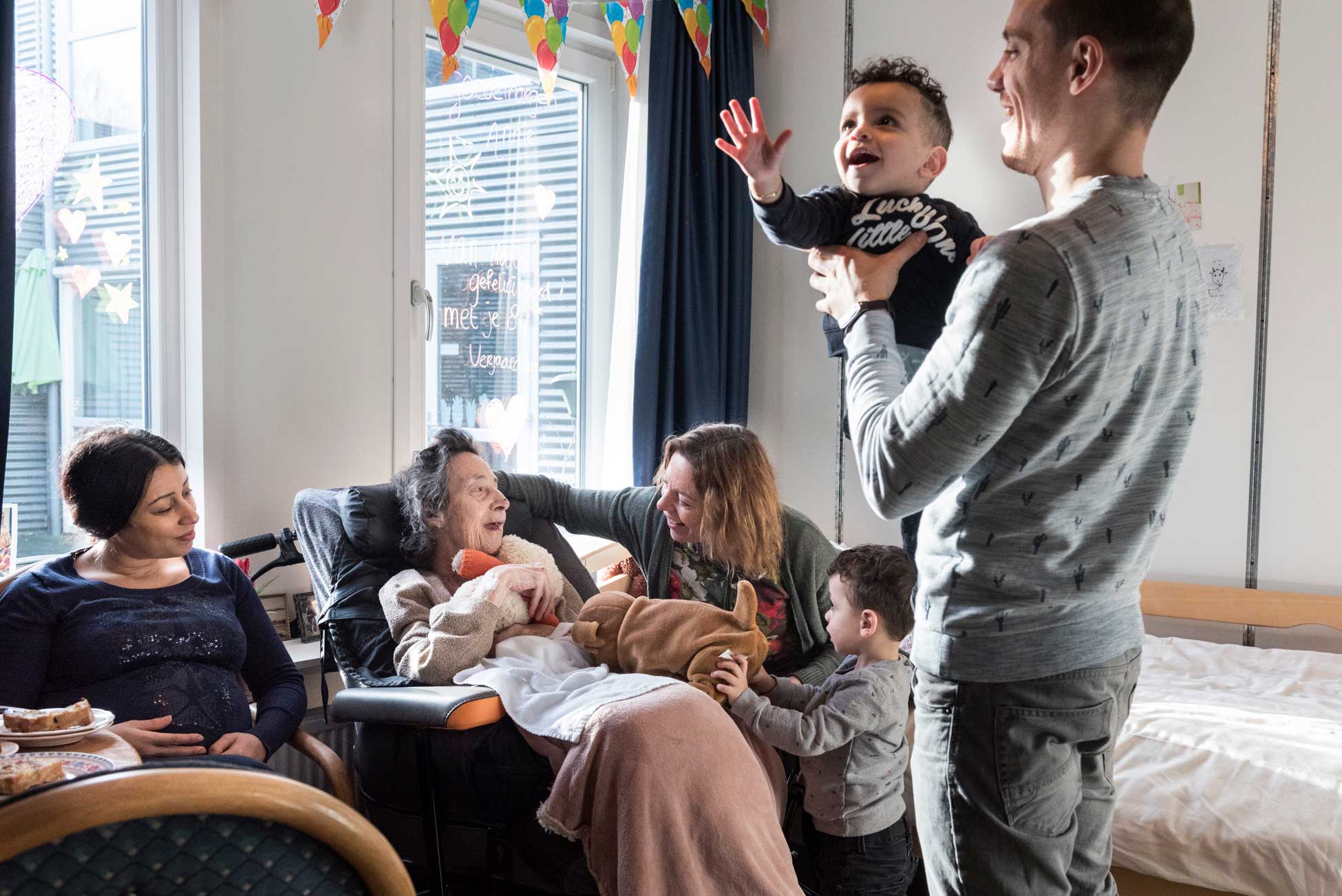 In gezelschap van andere bewoners, tijdens activiteiten, genoot ze. Alleen op haar kamer sloeg de angst en de eenzaamheid toe. De ziekte manifesteerde zich in fases. Wandelingen veroorzaakten onrust omdat ze bang was niet meer thuis te komen. Na schrijven op de muren, stopte het schrijven helemaal evenals het besef van de dagen. Annie genoot van muziek maar zong niet meer. Ze tikte zich ritmisch door de dagen heen. In gesprekken gingen de woorden over in onbegrijpelijke taal. Het genieten van de zon, van gezelschap en van lekker eten blijft. Langzaam trok ze zich steeds meer terug. Ze raakte opgesloten in haar lichaam, wat steeds minder kon. Ze werd totaal afhankelijk. Naast ‘ja' en ‘nee' kon ze zich niet meer uitdrukken maar ze leek zich van veel meer bewust. Tijdens het wassen wisselden angst, schreeuwen, knijpen, genieten en dankbaarheid elkaar af. Bij ieder bezoek schonk ze me een stralende warme, liefdevolle lach.